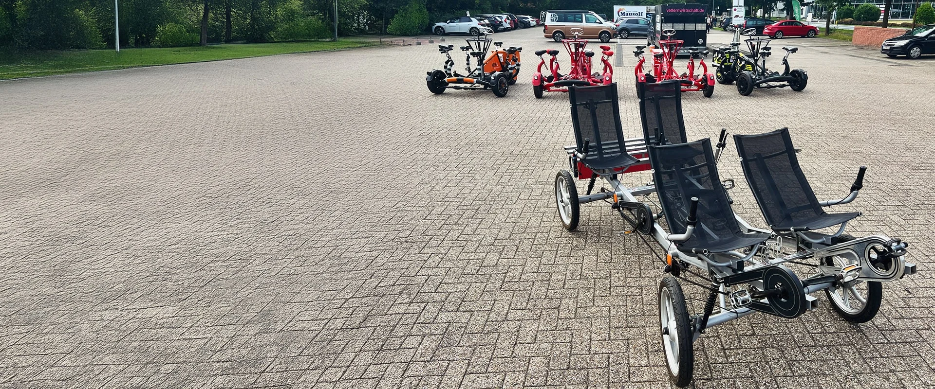 Wir haben bei uns in Ganderkesee 4 GanterMobile für 7 Personen und einen GanterCruiser für 4 Personen. Das ist Spaß für Gruppen von bis zu 32 Personen – ideal für Firmen- und Vereinsausflüge!